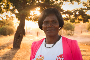 “Als ik hoor van een zwangerschap ga ik op bezoek. Ik vertel mijn naam en dat ik hiv-positief ben. Dan leg ik uit wat moeders én vaders kunnen doen om te voorkomen dat hun kind met hiv geboren wordt. Ik verwijs hen naar het gezondheidscentrum om zich te laten testen en voor prenatale zorg. Als een moeder hiv-positief is kan ze daar ook medicatie krijgen. Tijdens de zwangerschap begeleid ik de vrouwen, ze kunnen met vragen bij mij terecht. Ik leg uit hoe ze zich kunnen voorbereiden op de bevalling en wat een gezond dieet is voor vrouwen die hiv-positief zijn.”