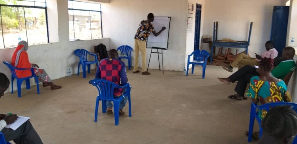 1,5 meter afstand, maar we blijven ons inzitten voor kinderen in nood! In Zuid-Soedan, trainen we bijvoorbeeld veldwerkers hoe ze corona kunnen herkennen en welke maatregelen ze kunnen adviseren aan de gezinnen in het projectgebied. In groepjes van 6 in plaats van allemaal tegelijk, maar we kunnen zo toch het werk voorzetten, en juist in Zuid-Soedan is dat – letterlijk – van levensbelang.