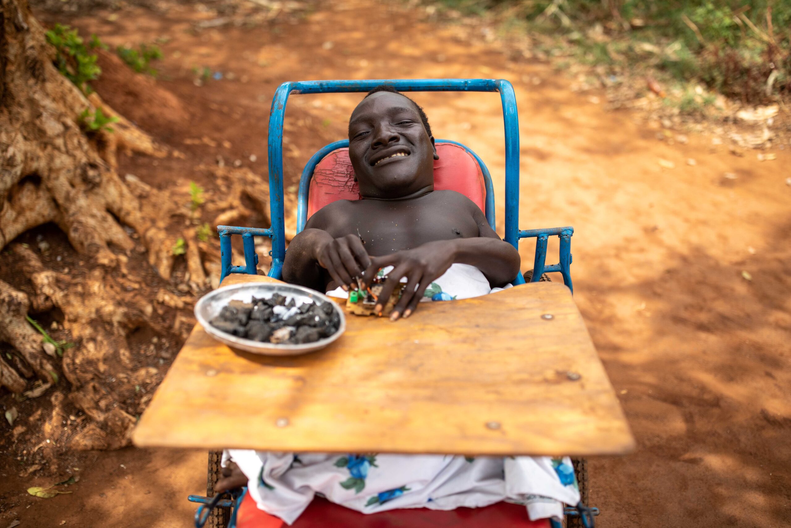 Dankzij het dorpsprogramma heeft Patrick een matras en een speciale rolstoel gekregen. “Sindsdien heeft hij een toekomst en zie ik een enorme verandering bij hem. Hij kan naar buiten en voelt zich daardoor een mens. Ook heeft hij veel vrienden gekregen. Patrick repareert zelf telefoons en radio’s. Ik hoop dat hij daar genoeg mee verdient om rond te komen.”